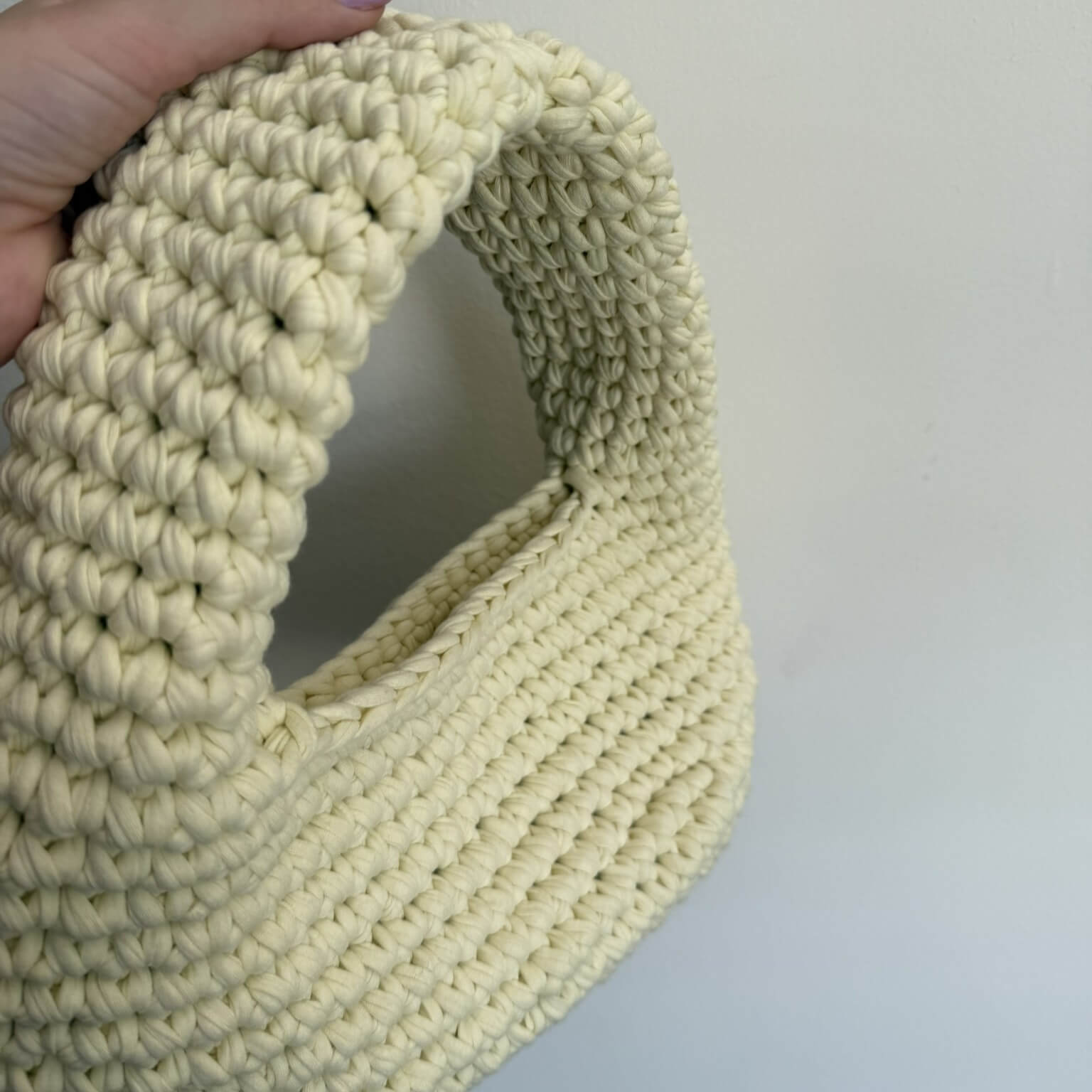 Fettuccia fango a forma di tubolare per realizzare borse all'uncinetto