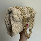 The Matilde bag is a clutch with a sophisticated design, with an oval bottom and a body made with low stitches that give it a structured and refined look. Despite the softness of the chenille yarn, the bag remains firm and does not sag , maintaining a perfect shape even after use. This model is ideal for special occasions: perfect both during the day and for evening events. The elegance of the yarn and the compact design make it the ideal choice for those who want a fashionable and quality bag.