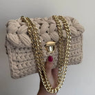 The Matilde bag is a clutch with a sophisticated design, with an oval bottom and a body made with low stitches that give it a structured and refined look. Despite the softness of the chenille yarn, the bag remains firm and does not sag , maintaining a perfect shape even after use. This model is ideal for special occasions: perfect both during the day and for evening events. The elegance of the yarn and the compact design make it the ideal choice for those who want a fashionable and quality bag.